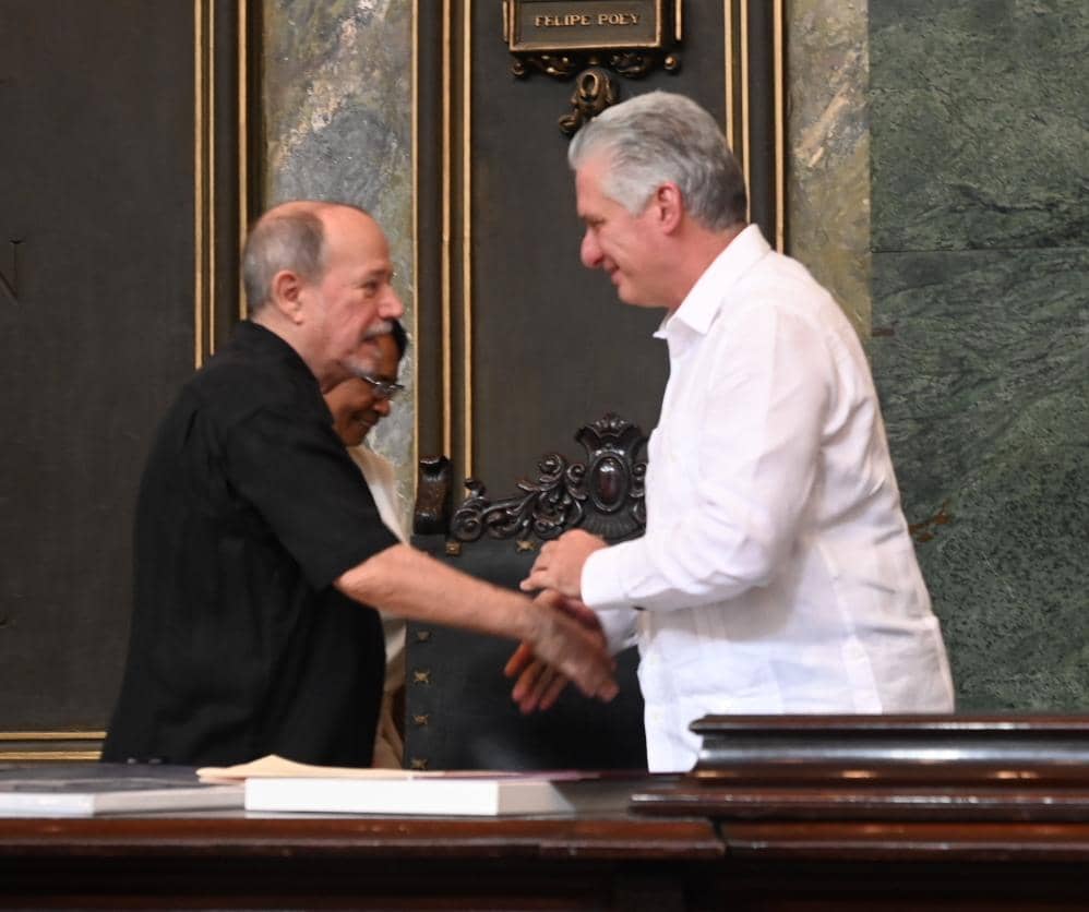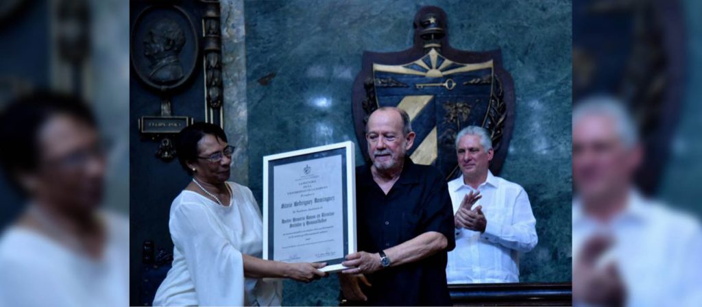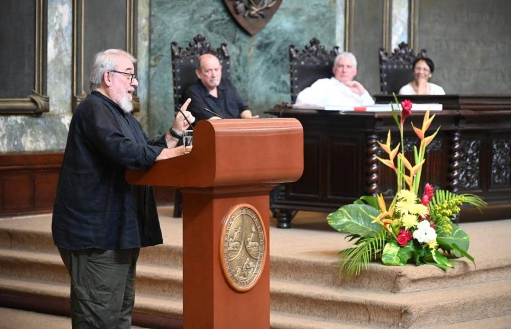 Es indescriptible ser reconocido por la institución educacional por la que han pasado y han hecho historia tantas personalidades. Muy especialmente si esto ocurre en el país en que nacimos. Decir gracias es poco para un abrazo tan generoso que abruma. Gracias también a nuestro querido Manolo Calviño, por su elogio.