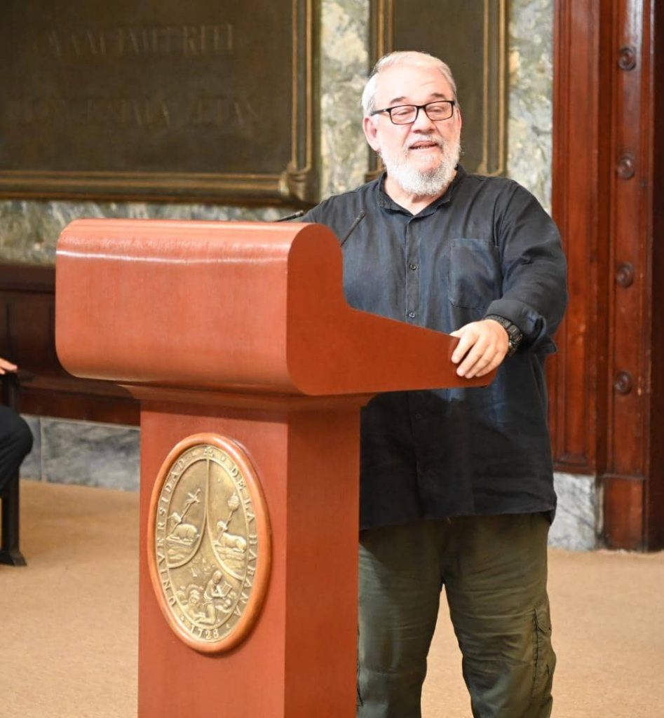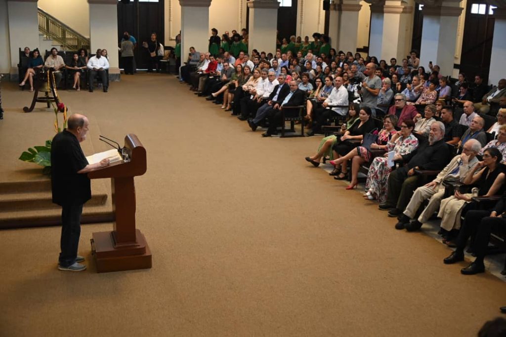 Resulta que tengo vínculos históricos con esta facultad, muy particularmente con Artes y Letras. Muchos viejos y queridos amigos pasaron por aquí; algunos fueron profesores. Yo estuve a punto de entrar una vez, en Historia, pero las consecuencias de mi ejercicio de guitárrica —como diría Retamar— no me dejaron.