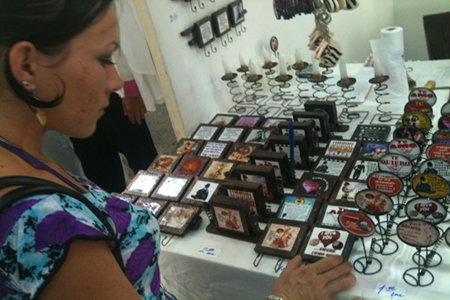En tanto, Ángela Espinosa Escalona, quien ha venido tres veces a la Feria, conversa acerca de las ganancias culturales que para ella significa su participación en este tipo de eventos: “Uno va aprendiendo de otras obras que ve, de los extranjeros, y hasta de la misma provincia. Aquí he visto muchas formas de trabajar la cerámica fría. Me llamaron la atención adornos para las fiestas de los quince años, que están muy interesantes. El creador nota e incorpora lo que aprende y me gusta mucho ese intercambio cultural que uno percibe. Además, este espacio me ha permitido mostrar mi trabajo realizándolo en el propio stand. La gente se queda parada observando cómo trabajo; preguntan cómo se hacen las velas, qué proceso lleva el color y las esencias. Eso me encanta”.