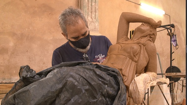 De recorrido por el taller, seríamos testigos de varios procesos, inimaginables hasta entonces… Modelado en barro —con asombroso grado de detalle— revestimientos en yeso, fibras de vidrio y resina… Se van moldeando las formas, relieves, detalles, cuerpos… De inicio a fin, puede tardar meses.