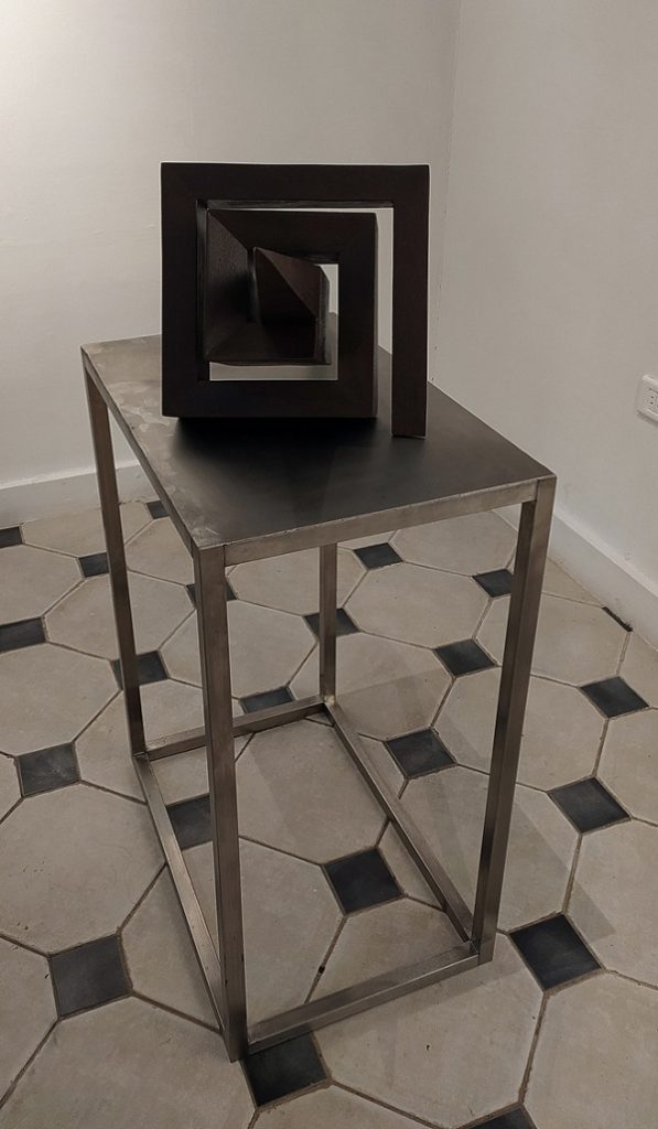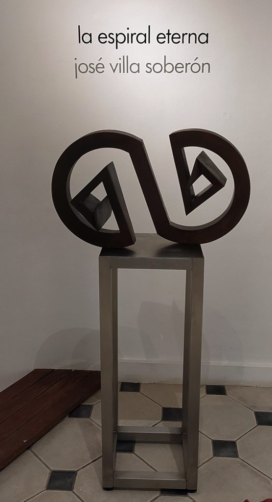 José Villa Soberón expone hasta enero próximo en Villa Manuela, la galería de la Unión de Escritores y Artistas de Cuba (Uneac), una muestra personal titulada La espiral eterna, que incluye 14 piezas de pequeño y mediano formato realizadas en acero: una verdadera joya que —por su limpieza, creatividad y factura— debe observarse y disfrutarse con ojo cercano.