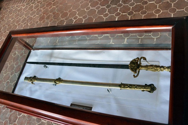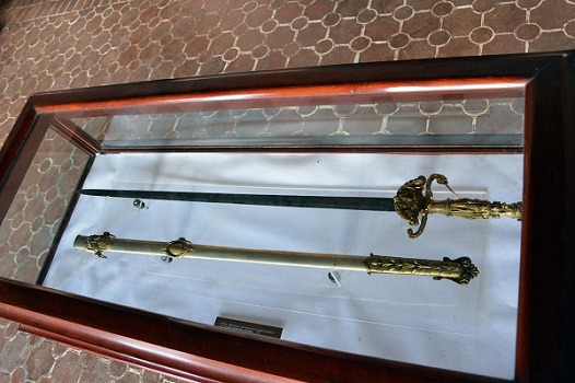 Recibe al visitante la espada ceremonial de Carlos Manuel de Céspedes, la misma que el Padre de la Patria cubana llamó “espada del honor”, y que devolvió, apenas le llegó a las manos, con el mandato de venderla para su inmediato regreso convertida en zapatos, ropas, cañones, fusiles y expediciones de apoyo a la causa de la libertad en la Isla.