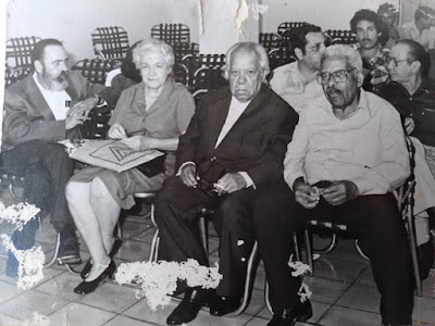 Eliseo Diego, Bella y Nicolás Guillén en un homenaje a Marcelino y Guillén. Foto: Tomada de Cubarte