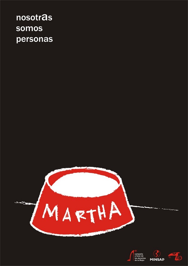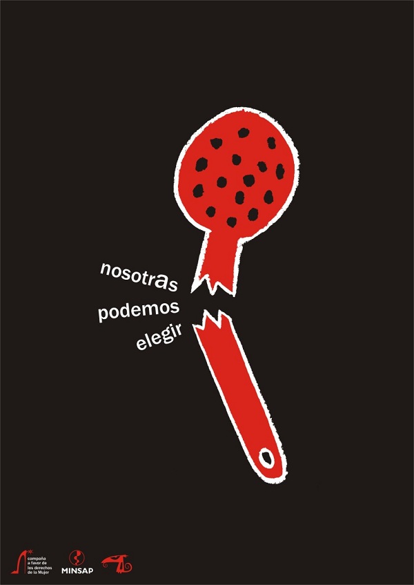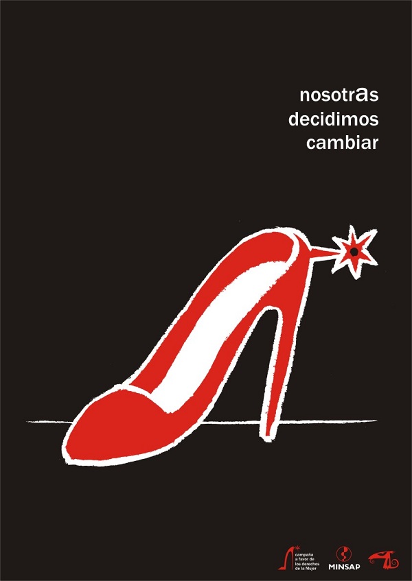Carteles como los que componen la Campaña por los derechos de la mujer, del año 2004, demuestran un uso simbólico y sintético del color. Solo un elemento dentro del cartel aparecerá en rojo, en tensa contraposición con el negro del fondo y el blanco de las siluetas. Elemento que se desea destacar porque es el que contiene el peso del mensaje, la metáfora: el rojo asociado a la dualidad de la mujer y su sensualidad en contraste con la sangre producto de la violencia. Además, la selección de elementos sencillos como la espumadera, el pozuelo para la comida del perro y el zapato con la espuela, en clara conexión con el texto que acompaña cada cartel (nosotras podemos elegir/ somos personas/ decidimos cambiar) completan el mensaje contra la violencia de género. A ello se agrega que el color y la ilustración sencilla cierran el discurso de la serie de carteles de la campaña, unificados bajo una misma estética.