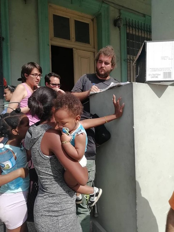 Lo que hicimos fue organizarnos los voluntarios, sobre todo de la facultad de Biología de la Universidad de La Habana, y comenzar a levantar información sobre los casos más críticos en esta parte de Jesús del Monte, derrumbes totales, familias numerosas, etc., y a partir de esa información se empezó la distribución de las donaciones. Aprovechando esa entrega seguíamos casa por casa recabando información sobre la situación de los vecinos. La misma gente te ayuda e indica los casos más necesitados. Básicamente lo que hacemos es distribuir a partir de la información que nos aportan los voluntarios.
