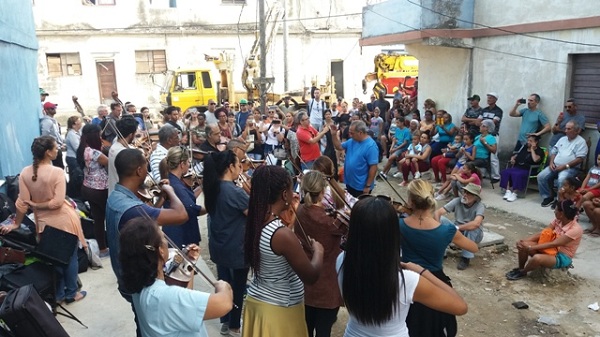 Tan hermoso como el gesto de los músicos de la OSN fue el de los vecinos de Regla. Organizados, disciplinados, con rostros marcados por la desventura, pero agradecidos, aplaudieron a los músicos a su llegada y disfrutaron de la famosa obra de José White, “La bella cubana”, que en esta primera ocasión les ofreció la OSN, apretujada sobre un pasillo entre dos edificios y compartiendo los atriles.