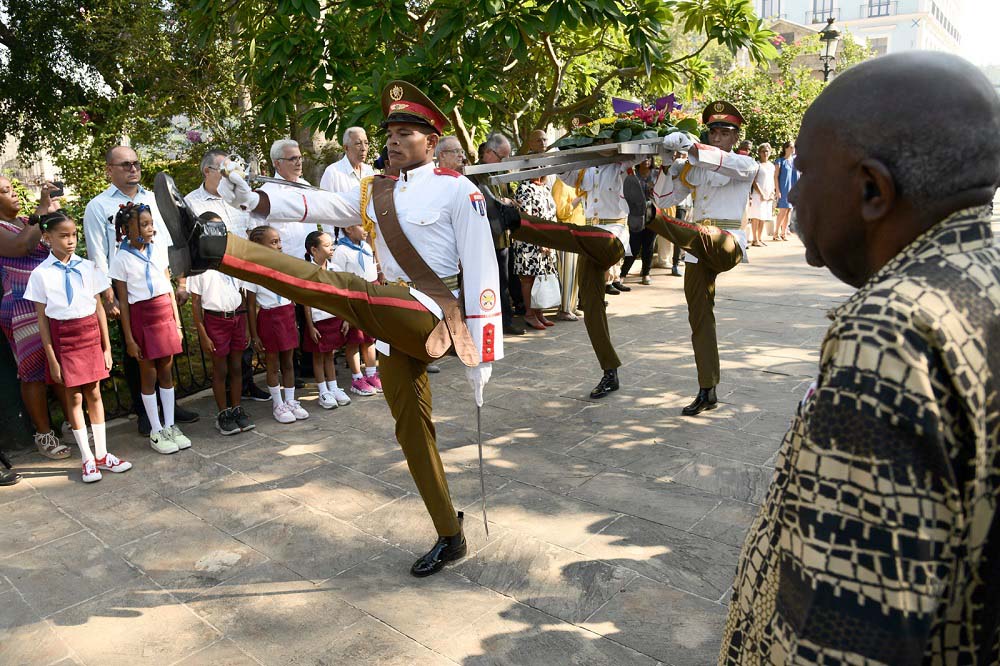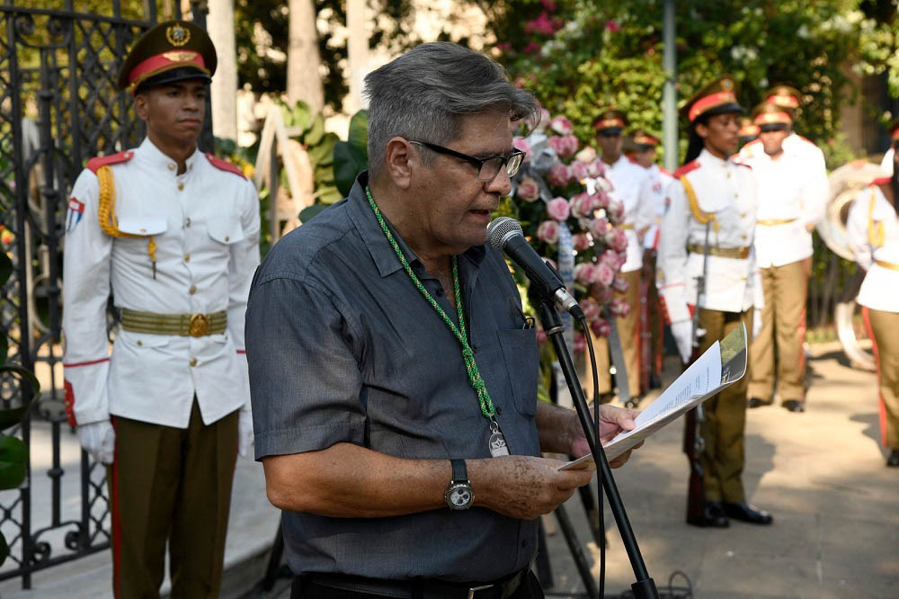 Por esas poderosas razones estamos reunidos hoy aquí, bajo la efigie del gran bayamés, en este acto que, de manera ritual, celebró el entrañable Eusebio Leal cada año, a partir de 1968, en conmemoración de los hechos que configuraron el día más relevante de la historia patria, y en honor a los cubanos que tuvieron el coraje y la bravura de levantarse en armas contra el colosal poderío militar de la España colonialista, un 10 de octubre hace ya ciento cincuenta y cinco años.