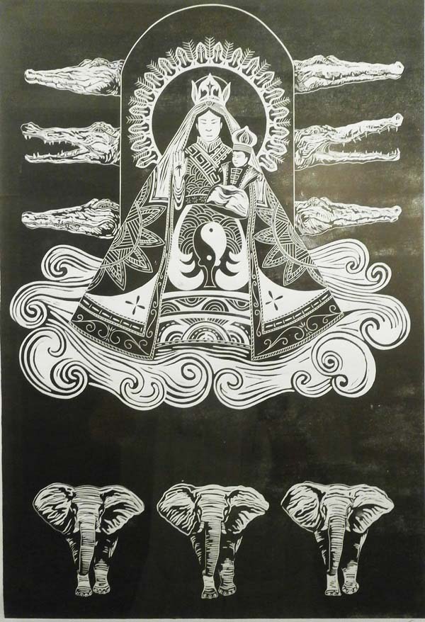 Este maridaje se corporiza a través de diez grabados, un video arte y dos obras tridimensionales los cuales se definen por la síntesis visual, la limpieza de cada propuesta y el uso consagratorio del color. Resulta significativo que en esta ocasión el artista conjuga técnicas modernas como el sistema digital —junto con el soporte del yeso de uso popular en Cuba— y el grabado. Antiquísima técnica cultivada primero por los sumerios hace 3000 años y posteriormente por los chinos, verdaderos fabricantes de papel en el siglo II a.n.e.