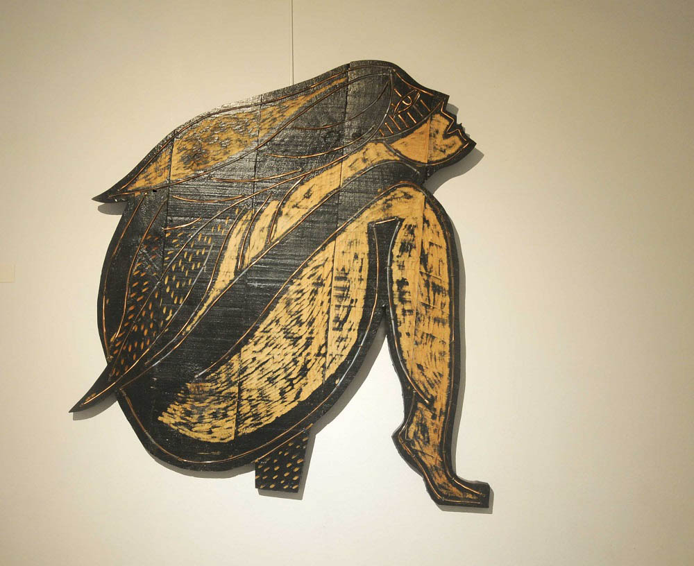 A los petos se suma un amplio conjunto de huecorrelieves en madera, ensamblajes y pinturas matéricas que insisten en los temas antedichos o proponen acercamientos al cuerpo femenino, las prerrogativas de la abstracción y las atmósferas cotidianas de una ciudad ruidosa y viva. Especial atención merece la instalación “La vendedora de amores”, cuya puesta en escena incorpora una pieza musical compuesta por Emilio Martini, quien habría de inspirarse en los pregones que, para gusto o exasperación de los vecinos y transeúntes, resuenan en las calles habaneras. Antes, el aguatero, el pirulero, el manisero, el frutero; hoy, los vendedores de bocaditos de helado o los compradores de frascos de perfume vacíos y cualquier pedacito de oro. Nuevamente, la realidad, y es que no hay otredad en Otredades; la muestra habla de nosotros, de lo que somos y hemos sido. Más que a lo ajeno, el título remite a otras manieras, a otros motivos (la música, la escultura blanda, una pintura de Adigio) que, sublimados por Finalé, han devuelto un conjunto de piezas novedosas dentro de su vasta producción artística.