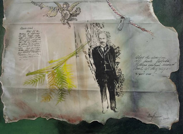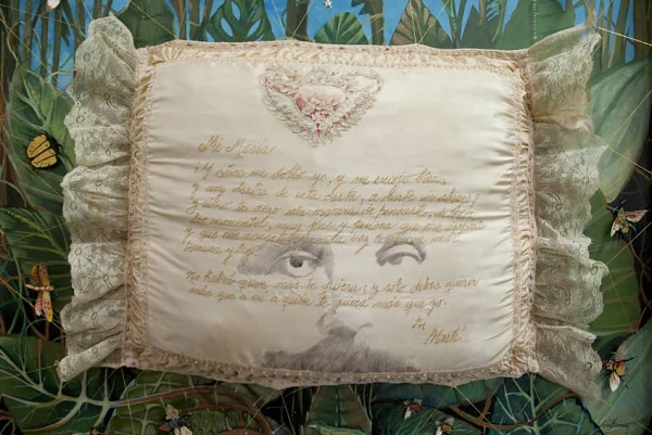 Sobre la tela satinada que forma el almohadón o cojín que sirve de soporte, la artista borda con sus manos y con el relieve conveniente, las letras de la última carta de Martí a María Mantilla, escrita el 9 de abril de 1895, mientras se encontraba en Cabo Haitiano, en espera de la embarcación que lo conduciría hacia Cuba, donde le dice: