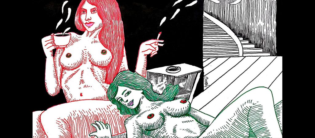 Se levanta en busca de café, son las dos y cuarenta y cinco de la mañana, es hora del café y el cigarro. Vendrá con la taza y se echará en la cama. Recostada a la cabecera dejará la taza sobre la improvisada mesa de noche, encenderá el cigarro y beberá el café en sorbos pequeñísimos.