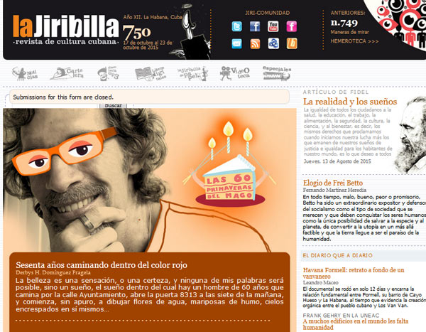 En uno de los días de andanzas por intranet encontré a La Jiribilla. Qué maravilla descubrir una publicación digital donde la cultura cubana era el principal asunto. Aquel choque literario avivó mi pasión por la escritura, la reflexión y el análisis exhaustivo de los procesos y sucesos que mantienen vibrante el crisol de nuestra nacionalidad, esa fundición metafórica que abarca todo lo que fuimos, somos y seremos.