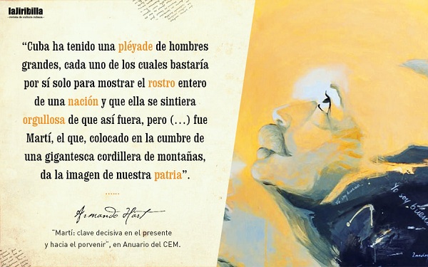 No es fácil hallar en la historia de las civilizaciones una personalidad paradigmática que fuera asumida de la manera que el cubano lo hizo con Martí, es decir, hasta el punto de tomarlo como símbolo esencial del país sin el cual este es irreconocible. Cuba ha tenido una pléyade de hombres grandes, cada uno de los cuales bastaría por sí solo para mostrar el rostro entero de una nación y que ella se sintiera orgullosa de que así fuera, pero con todo, la inmensa fuerza y valor de esos cubanos excepcionales, fue Martí, el que, colocado en la cumbre de una gigantesca cordillera de montañas, da la imagen de nuestra patria y, junto a la de Bolívar, la de nuestra América.