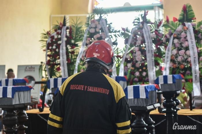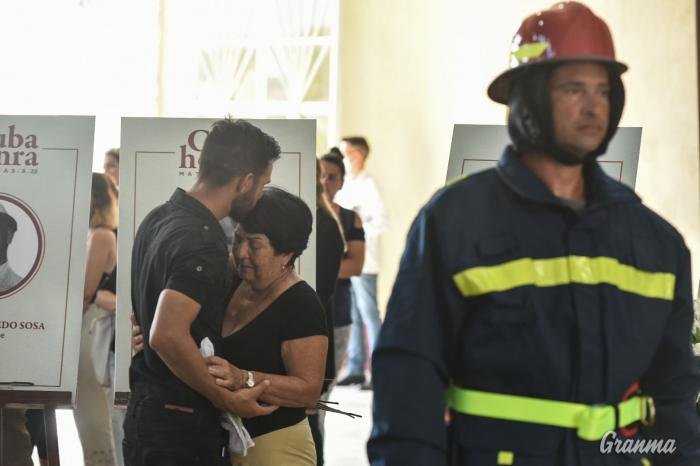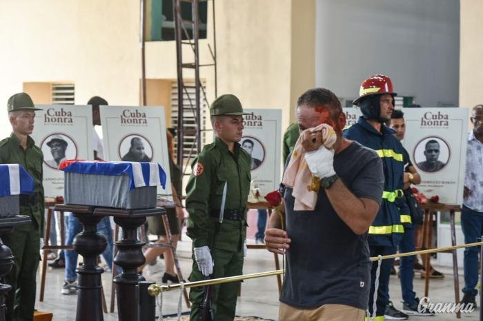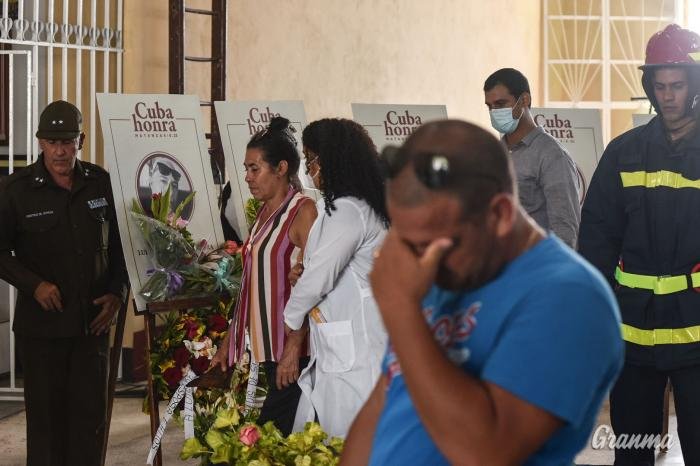 La conmoción se refleja en todos los rostros. Los militares se detienen para saludar. Un soldado lleva una oreja vendada, quemada.