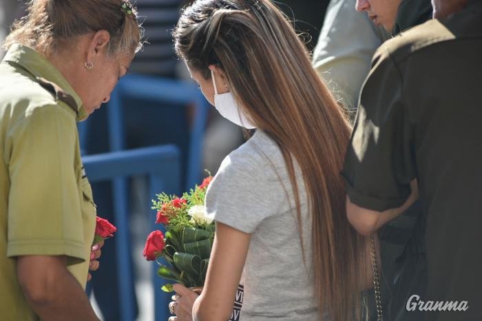 Hay velas blancas, moradas, rojas, azules, amarillas. Hay girasoles, rosas, gladiolos, picualas, mariposas. Las traen coroneles, capitanes, ancianas, niños, ministras, directoras de teatro, esa amalgama que es el pueblo.