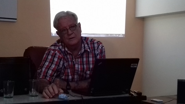 Llegó con un bastón y muy dispuesto a entregar sus saberes. Entiéndase que es Luis Álvarez uno de los investigadores culturales más importantes en la Cuba de hoy. Recalcó varias veces que este taller, más que todo, era de formación e investigación. Por supuesto, en dos jornadas no se iba aprender todo, pero Luis dejó en la mente de todos lo que vale un periodismo con investigación, gestión y creación.