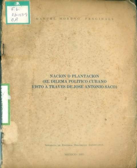 En 1960, de vuelta a Cuba ―y a la actividad académica― tras casi una década de experiencias empresariales en Venezuela, Manolo Moreno asumió esa tarea a partir de la problemática que, bajo la disyuntiva “Nación o Plantación”, había dejado planteada en su estudio seminal sobre Jose Antonio Saco. Diseñó entonces una estrategia investigativa de largo alcance que, partiendo del estudio exhaustivo de la economía azucarera esclavista, se proponía “seguir las huellas que arrancan del azúcar y se manifiestan en la instauración de una cátedra universitaria, o en un decreto sobre diezmos, o en una forma característica de las residencias señoriales urbanas, o en los efectos terribles del arrasamiento de los bosques y la erosión de los suelos” [2], para así descifrar aspectos claves e incomprendidos de nuestra historia.