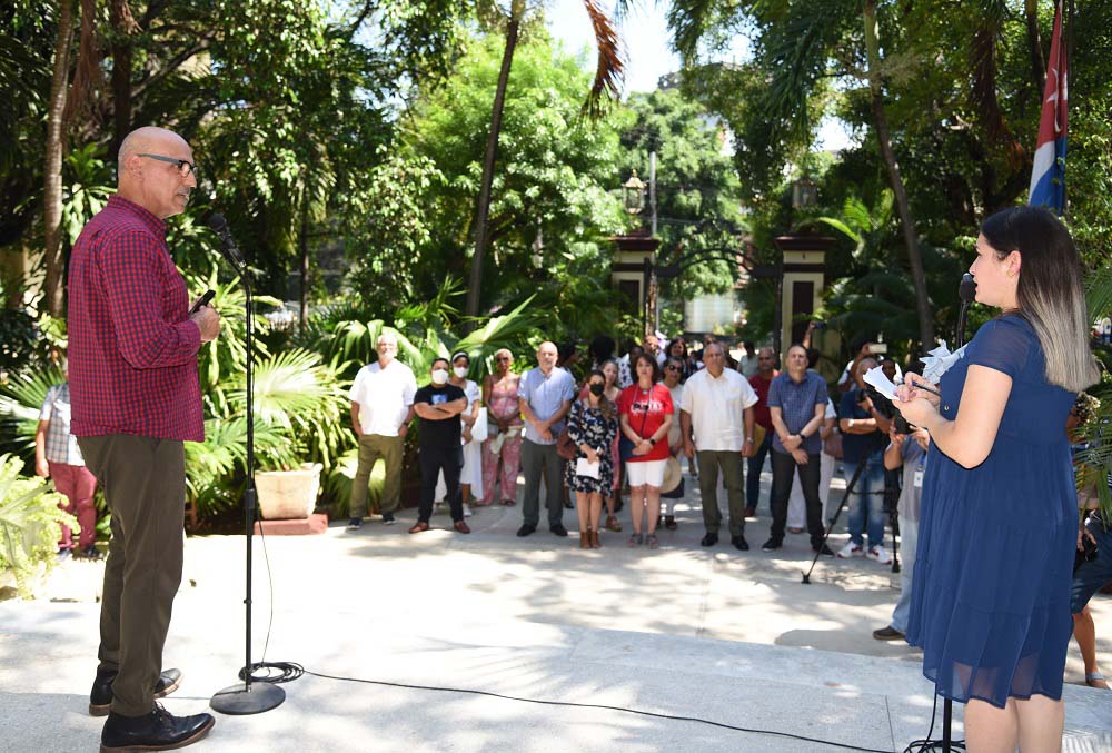 El coro Entrevoces, dirigido por la maestra Digna Guerra, amenizó la ceremonia. Durante el acto, el escritor y periodista Pedro de la Hoz, vicepresidente de la Uneac, comentó que entre Guillén y Langston existió una fraternidad casi inmediata sustentada desde los signos externos, como el color de la piel, hasta las causas comunes que ambos debían defender. Porque de la piel a la condición social se recorre un tránsito que definió, en ambos y en muchos otros, la necesidad de luchar por la igualdad y la justicia, y de reivindicar el legado de los pueblos africanos a nuestras culturas.