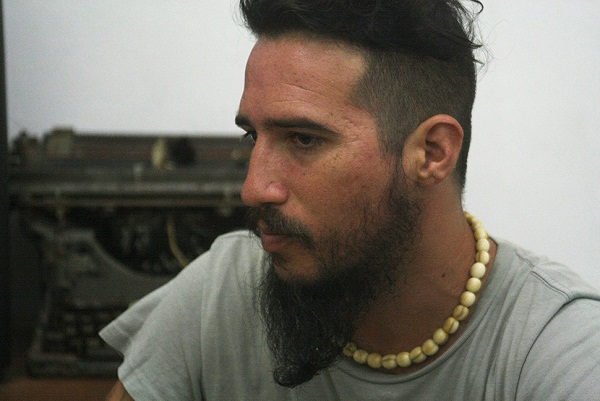 Porque música y visualidad se funden en este cantautor que prefiere definirse como un rockero cubano que toca el tres, la marímbula, la guitarra, que hace canción de autor, rock nacional, punk folclórico si se quiere. Un rockero cubano cuyas canciones ácidas y agresivas, unas, otras más líricas o poéticas, no pueden desvincularse de una actitud en el escenario: “Las palabras dicen una cosa, son el lenguaje inmediato y hago diferentes ejercicios con ellas, pero siempre debe existir una actitud detrás de eso. Nunca separo la actitud de la música, ambas llegan a mí de alguna manera. No me pongo límites en ese sentido porque la música en sí es infinita. El cuerpo es parte también del lenguaje, es parte también de la música, con una mirada o un gesto se puede decir mucho. El silencio, incluso, dice mucho”.