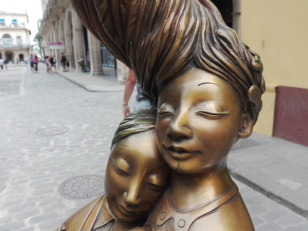 Calle Obispo, esquina a Oficios. En esta céntrica ubicación de la parte más antigua de la capital, el maestro Pedro Pablo Oliva ha decido dejar huellas de identidad en la XIII Bienal de La Habana, con tres esculturas en bronce de su autoría.