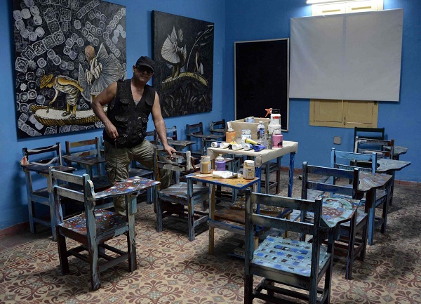 “En Cuba se sigue y se seguirá haciendo grabado, pues aunque a veces hay carencias, siempre se encuentran soluciones”, comentó. Además explicó las modificaciones que realiza en su taller para potenciar esta modalidad, entre ellas la creación de un espacio dedicado únicamente a las máquinas, fabricadas en la década del 90 con piezas industriales, que le permiten realizar varias técnicas como la tipografía, la xilografía y la litografía.