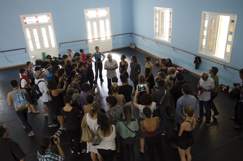 En la Escuela Nacional de Ballet Fernando Alonso fue agasajada por profesores y estudiantes. Allí intercambió con los estudiantes de la academia, de la que han egresado estrellas mundiales y virtuosos bailarines, como José Manuel Carreño y Xiomara Reyes, a quienes vio bailar cuando ambos formaban parte de la nómina del ABT.
