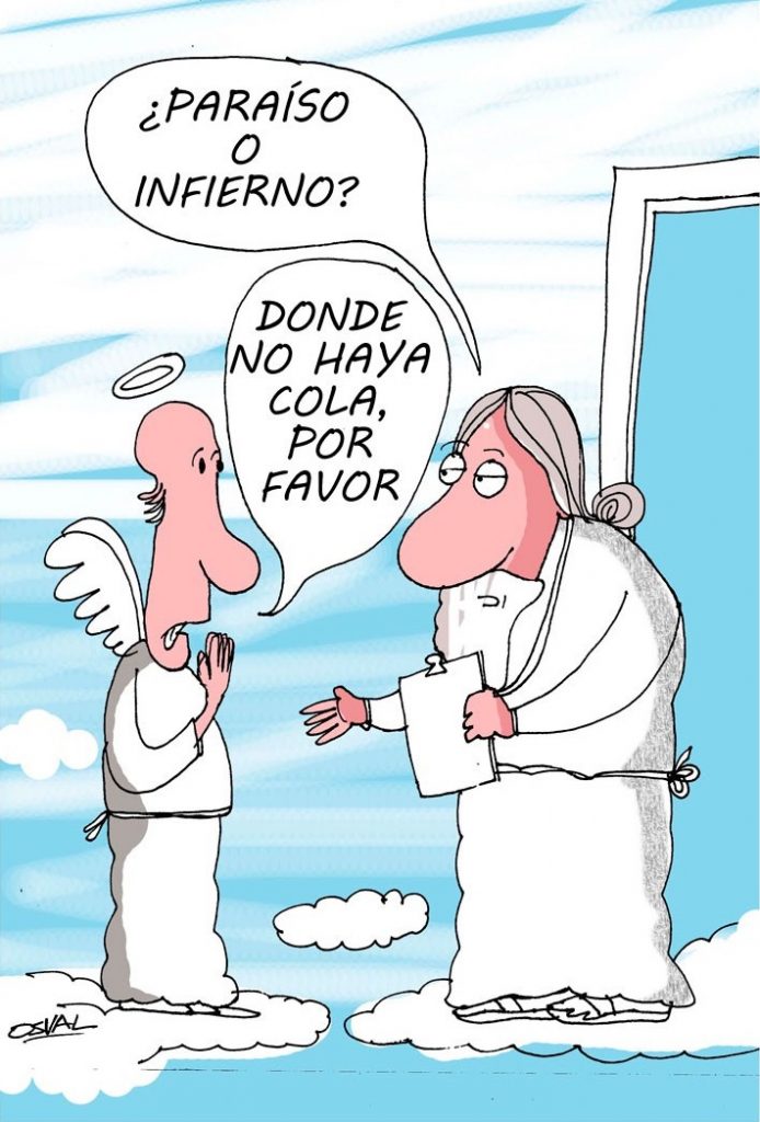 Debido al largo tiempo que se gasta en las colas, no queda más remedio que escuchar lo que se dice, lo que se comenta, lo que se analiza mientras se espera el turno, que puede ser, entre infinitas posibilidades, para comprar un pomo de aceite, para legalizar una firma, o para que nos actualicen la libreta de abastecimiento de la Oficoda porque seguimos vivos, y no como dice la bodeguera, quien el mes anterior a declararnos fallecidos, informó que ya no vivimos en Cuba. Siempre el error lo comete otra persona, y nosotros pagamos los platos rotos. Cualquier trámite lleva implícita su respectiva cola, ya se sabe, de modo que perdedera de tiempo y enjundiosas habladurías abundan en estas circunstancias. Prefiero escuchar a opinar, y he aquí algunos de los resultados, y sus respectivas motivaciones, que tergiversan olímpicamente nuestro riquísimo y heredado refranero popular: