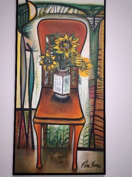 Resalta una pintura dedicada a Wifredo Lam, como homenaje a La silla (1943) de este enorme artista de la historia del arte del siglo XX.
