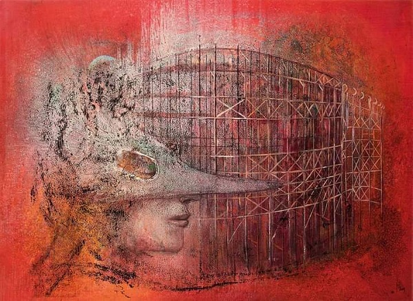 experimentación con las texturas y las composiciones, que enriquece con paletas armónicas de rojos, pardos, azules, amarillos, donde hay rostros protagonistas o escondidos, y también asoman retículas de arquitecturas o se avizoran escenas casi ocultas. En estos lienzos es fácil percibir el logrado equilibrio entre lo figurativo y la abstracción matérica, ya sea como un rostro que se observa tras los empastes y transparencias, como en otros donde asoma bien visible el rostro anónimo con una máscara.