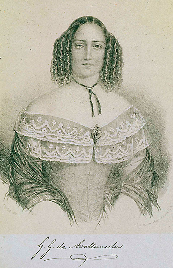 Pero Avellaneda era valiente y tal vez un poco arrogante, y prefirió firmar con un pseudónimo que denotaba y enfatizaba su extrañeza, su otredad, su pertenencia a otros linajes a los que nunca renunció. No dudó en defender, desde muy joven, su derecho a ser aceptada como escritora y mujer con un pensamiento y una actividad intelectual propios. Por ello, y porque concurría con hombres a torneos poéticos, y les ganaba; porque sabía imponerse; porque hasta osó pedir su ingreso a la Real Academia de la Lengua, y seguramente por mucho más, durante todo un siglo el primero de los lugares comunes de la crítica en torno a Avellaneda ha sido el de su no adecuación al “deber ser” femenino. El dictum atribuido a Bretón de los Herreros —“Es mucho hombre esa mujer”— encontró eco y suscitó múltiples variaciones casi hasta la mitad del siglo XX. Hoy la reconocemos no solo como la gran escritora que fue, sino también como una de las más lúcidas precursoras del feminismo latinoamericano, abolicionista, antiesclavista y antirracista, como su novela Sab.