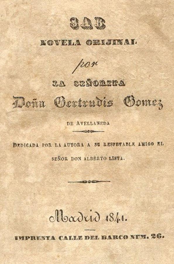 Esta novela pudo no haberse publicado, pudo no ser el texto excepcional que conocemos —transgresor y subversivo, abolicionista y antiesclavista, antirracista y feminista, en fin, ajeno y opuesto a la política colonial imperante—, si Avellaneda hubiera cedido a las presiones ejercidas sobre ella por el contexto histórico en que Sab ve la luz, y si no hubiera sabido blindarse con disímiles argucias para poder ver impresa una novela a cuya escritura y defensa se había dedicado con tanto afán.