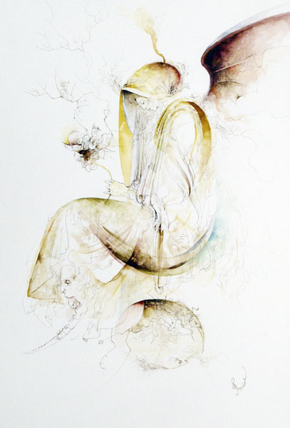Ángel de la jiribilla, en el asombro, en el perplejo suave. No asombro mofletudo del Eolo. No perplejo en cariátide entre la guayaba amorosa y los reflejos de la bandeja de plata en la frente. Asombro que encuentra el círculo del cocuyo para exorcizar la medianoche. Perplejo que enarca la cola del gallo, para no confundirse en la manera cegadora. Perplejo que encuentra a la pluma verde del gallo.