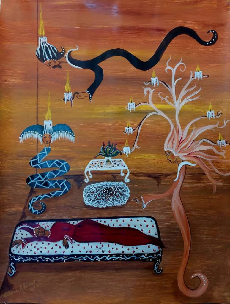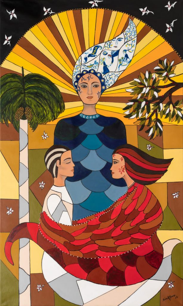 La artista se inspiró en el misterio que se respira con solo poner un pie en la villa, recorrer sus iglesias y hablar con la gente. Así me lo ha dicho varias veces, pues desde aquel primer encuentro Remedios ha estado presente en su familia, en el entorno del cual comenzaron a salir obras fabulosas. La idea era sacar de la madera añeja todo lo que el tiempo le había impreso y darle hermosura. La técnica de Silvia ha fructificado, pues nos dice que el lienzo y el momento parecieran dar a luz. De manera que ella solo es un intermediario por el cual pasa la obra ya fracturada en algún recoveco de la espiritualidad. Este platonismo pictórico no es casual en una mujer que ha crecido desde jovencita en un entorno de creación atravesado por ideas católicas, nacionalistas, origenistas. Aunque podríamos verla como una creadora intuitiva, hay en su pátina el toque profesional propio de una persona culta y sensible, de una mujer que se aproxima al arte desde la poesía, la música, el cine, el teatro. Como los talleres renacentistas, la casa de los Vitier-García Marruz es un hervidero de obras y de creacionismo espiritual que asciende a los más excelsos elementos de la cultura nacional, sin ser ellos nunca superficiales ni tratar con desdén alguna de las esencias patrias, aun las más sencillas o alejadas, como puede ser la pequeña villa remediana.