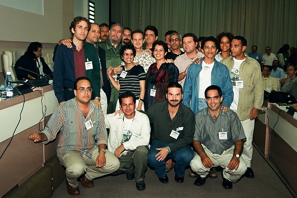 Retrato de grupo con Fidel.jpg. Pie: Retrato de grupo con Fidel. Foto: Angelito Baldrich