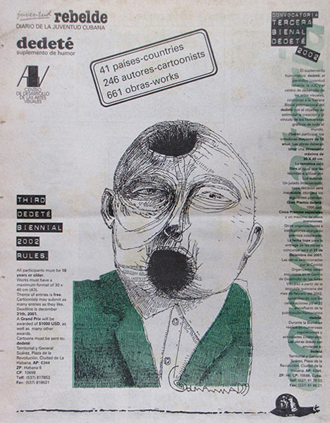 Nos mantenemos en la página 16 de la edición dominical del diario Juventud Rebelde, el que, además, publica un dedeté en sus páginas centrales cada 45 días; ese número tiene ocho páginas, y también asumimos todas las ilustraciones del periódico así como espacios que este dedica a la caricatura como “La opinión gráfica” o “La Cuchilla”.