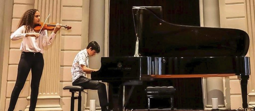 “Estos virtuosos instrumentistas ponen todo su empeño y talento para que las melodías que emanan del violín y del piano conquisten los oídos de quienes los escuchan”.