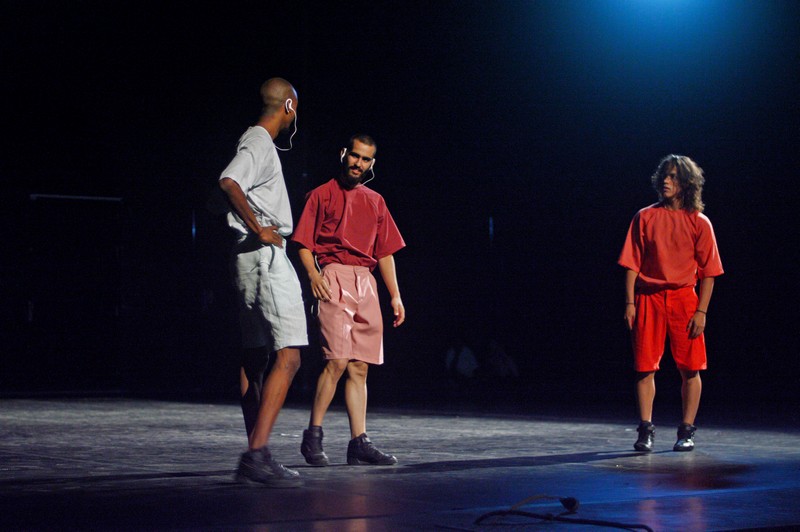 Según se desprende de su enfoque coreográfico, las maneras de comportarse las individualidades en un medio grupal obedecen, en principio, a descargas de sus impulsos internos. Pueden en ocasiones llegar a mostrarse entrelazados, acoplados en hileras en un tratamiento coral. ¡Qué imagen para establecer una comunión integradora! Sin embargo, no constituyen un cuerpo unificado. Son sujetos diferenciados aun en esa reunión, casi una sumatoria por la disposición de uno al lado del otro. Lo hace a través de dos signos: uno, el vestuario, igual en ambos géneros, personificado en combinaciones de color; el otro, en los inseparables aparatos de audición que arrojan músicas desiguales a sus oídos. Hasta cuando participan juntos divirtiéndose alegremente, en última instancia están separados, inmersos en sus pequeños mundos y dinámicas propias. Responden a las motivaciones profundas de sus temperamentos. Se expresan sueltos, componiendo figuras en sus giros, sin prever nada, frenando en seco y arrancando en el mismo instante en otra dirección; tendiendo a describir un dibujo complejo, bailado en desborde energético, entregados a experimentaciones libres. Es la exaltación de la espontaneidad de los cuerpos para revelar sus deseos.