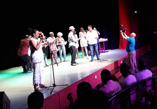 La vocalista Zulema Iglesias, a modo de saludo para los teatristas cubanos, puso su voz y sus cualidades excepcionales como intérprete, al bolero antológico Dame la mano, de Enrique Bonne.