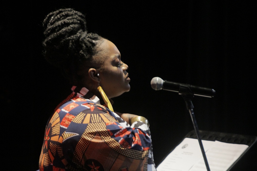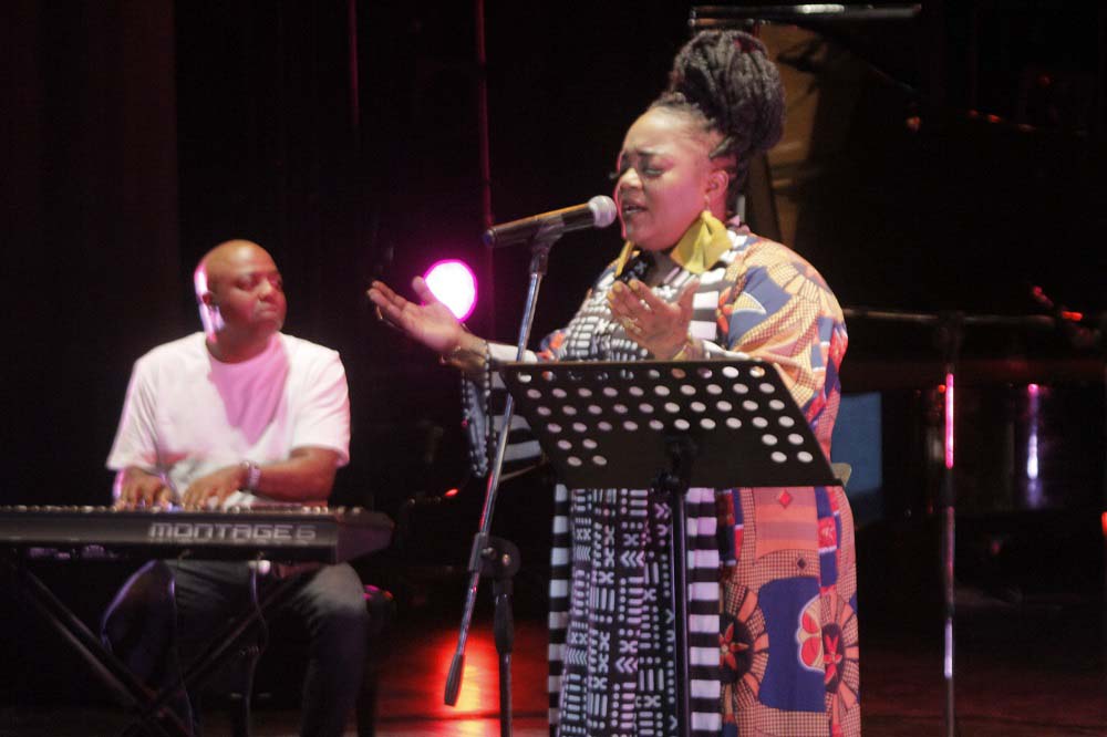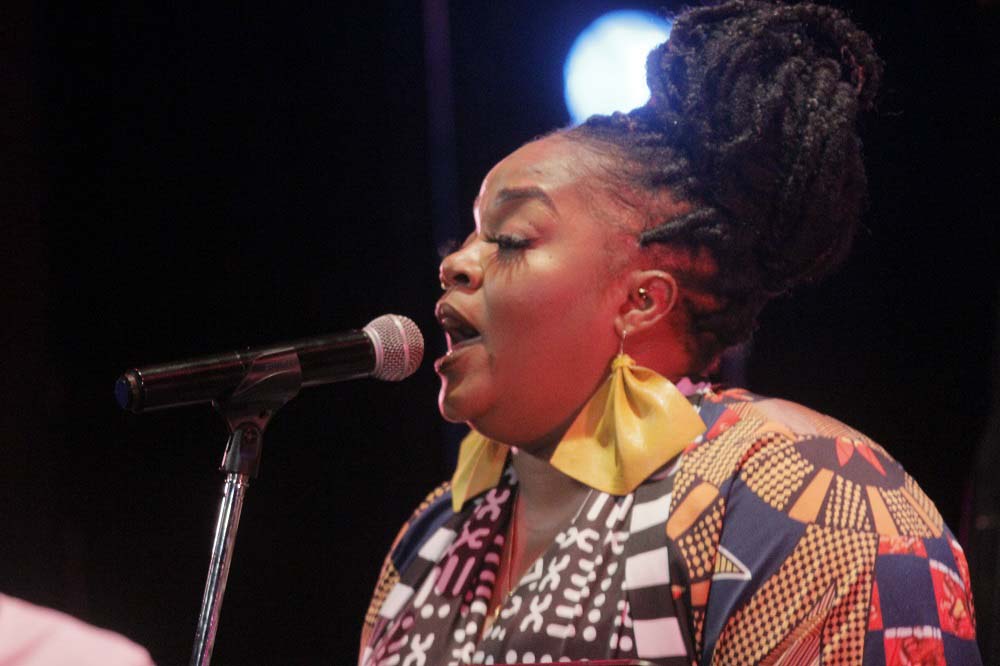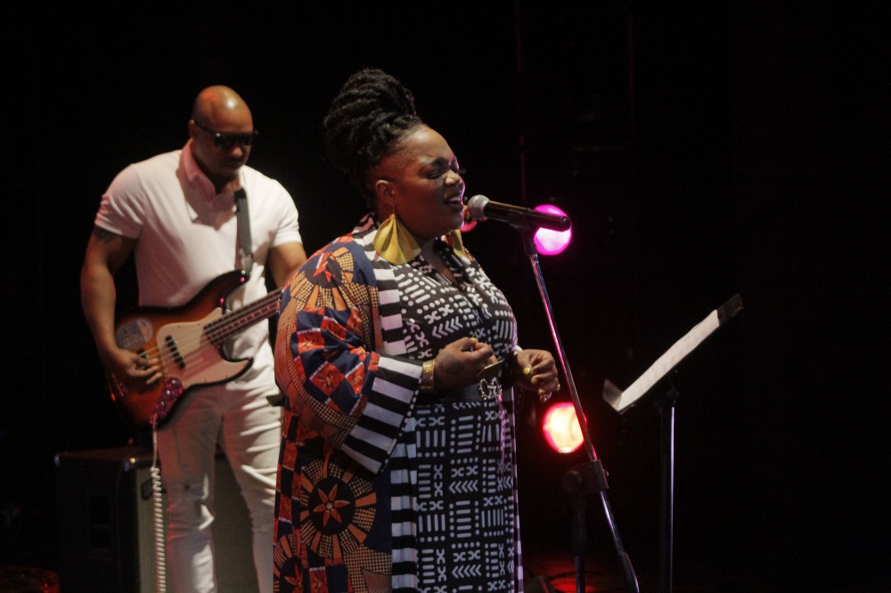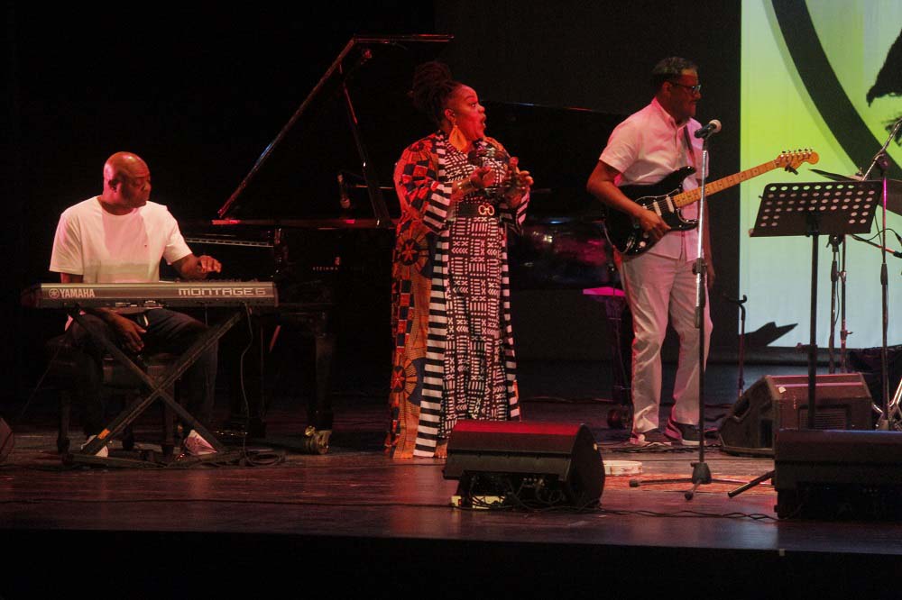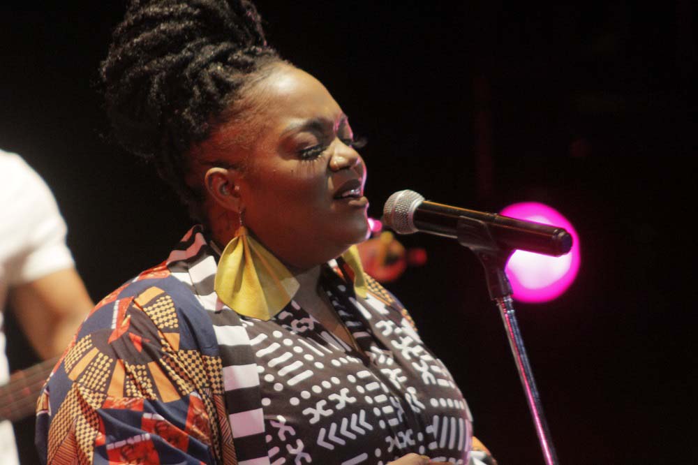 Estaba descalza. En la estera que sus pies pisaban, reposaba a ratos una pandereta. Un vestuario colorido, un moño alto, aretes grandes y llamativos completaban una imagen que proyectaba orgullo y respeto hacia sus raíces. Su banda, conformada por Darrin Thomas en el piano, Lucas Singletary en el bajo, Walt Lundy en el drums, y Caleb Armstrong en la guitarra, vestía de blanco. Sin duda, constituyó un acompañamiento de lujo, con perfecta sincronía y empaste.