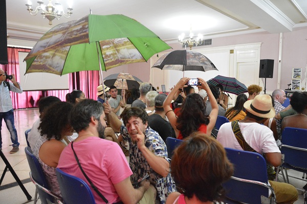 Creo y defiendo que todo acto creativo reside en las respuestas que seamos capaces de encontrar, de una manera original, a los problemas de difícil solución o que se creen sin ella. Por lo tanto buscar estas respuestas prácticas es también un entrenamiento físico e intelectual que hace que tenga que desplazarme de mi zona de confort. Entonces los coloquios, la observación durante unos minutos de un taller, las conversaciones agitadas, las interrogantes se mezclan en mi cabeza mientras tengo que repartir el tan agradable jugo de naranja o mientras cargo las meriendas y tantas otras cosas. Durante estas horas de descanso que todos los participantes aprovechan para comentar, yo realizo mi entrenamiento: mi cuerpo ejecuta las tareas rutinarias de servir, de contar, de recibir tiquets y mi cerebro revuelve los conceptos teóricos, las conferencias, degusta el convivio con un sorbo de café apurado.