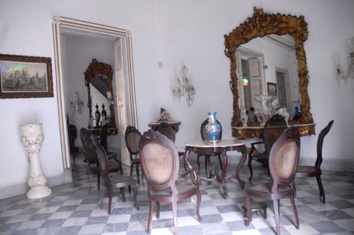 Con solo traspasar el umbral de la vivienda, ubicada en la calle Plácido No. 74, se disfruta de un ambiente armonizado por muebles de tipo medallón, trabajados con maderas preciosas cubanas (cedro y caoba), exponentes de las artes decorativas de variadas manufacturas Sévres, Limonges, Sarregueminez, Maissen, Dresden, Capodimonte y Mintons, entre otras.