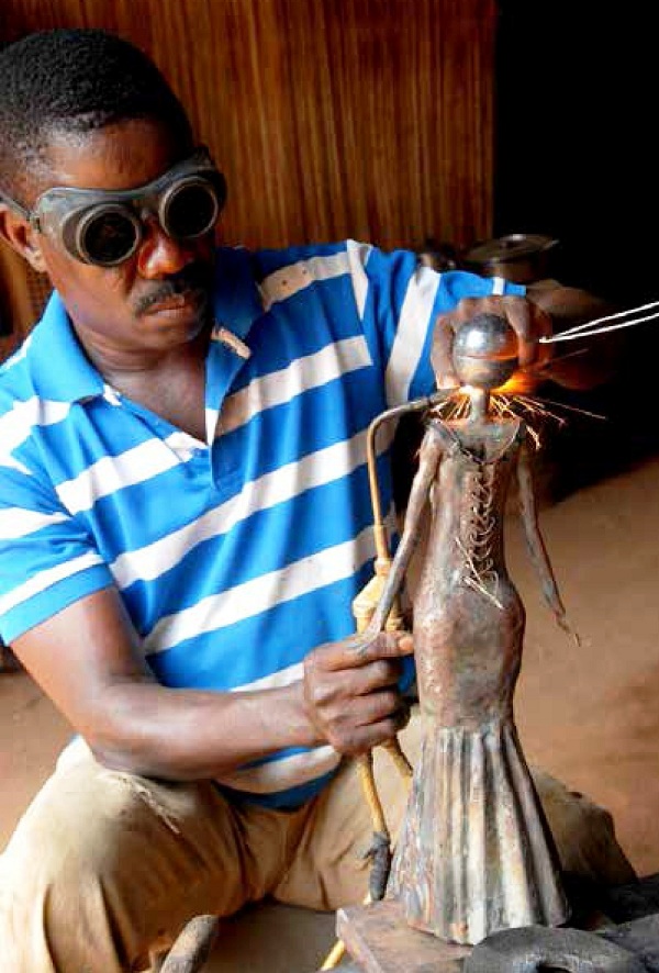 Didier, profesional del oficio de la soldadura y la chapistería, encontró su derrotero en el arte de la escultura. Su trabajo parte del reciclaje de objetos y desechos de diversos orígenes, los cuales transforma en piezas del más distinguido arte. Para la crítica, su cualidad artística primera es la capacidad de “atrapar en el hierro momentos y sensaciones que fungen como testimonios ꞌvivosꞌ y tridimensionales de la actualidad togolesa”.[1] Sus obras llenas del encanto de la inmediatez cotidiana, que roza el hiperrealismo, nunca llegan a abalanzarse al mimetismo inocuo. A través de estas se abre sin dudas una ventana a la realidad del África negra.
