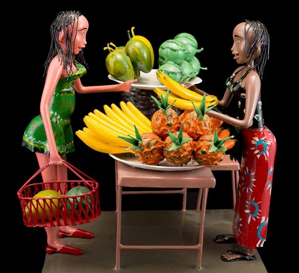 La vendedora de frutas y hortalizas. Metal y pintura acrílica.