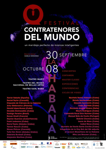 Aunque, sin dudas, uno de los platos fuertes del evento será el concurso de contratenores ―en el que compiten tres cubanos―, el cual está dedicado a René Jacobs en su 70 aniversario. El jurado estará presidido por Daniel Taylor, una de las figuras relevantes de ese registro vocal en su país, quien, además, es profesor de la Universidad de Toronto.