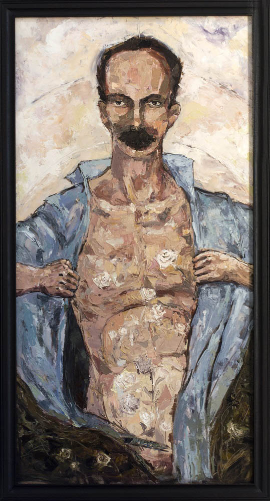 Este 27 de enero, víspera del aniversario 170 del natalicio de José Martí, la Biblioteca Nacional que lleva su nombre, como en otros aniversarios, le rinde homenaje con una exposición de pinturas, en esta ocasión, de la autoría del artista santaclareño Mario Fabelo Estrada. Bajo el título En cuerpo y alma, Fabelo Estrada nos presenta un conjunto de 12 obras cuya particularidad primera es su unidad temática y estilística. La segunda, transparentar con un colorido a ratos amable, pero casi siempre anticipador de cierta urdimbre de carácter expresionista, la sensibilidad del hombre de La Edad de Oro, el mismo que cultivara rosas blancas para amigos y enemigos.