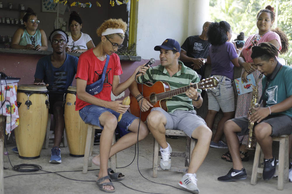 En esta ocasión la Brigada artística contó con la presencia del Grupo de Experimentación Escénica La Caja Negra, acompañado de otros músicos como el trovador Carlos Javier Álvarez Bravo, el saxofonista Yormanis Soto, jefe de la Sección de Música de la filial santiaguera de la AHS y profesor del Conservatorio Esteban Salas; el escritor Roberto Fournier, vicedirector de la Editorial Oriente, quien llevó libros infantiles para obsequiar en las comunidades. Entre ellos, algunos nuevos títulos: Estaciones y regresos, de José Raúl Fraguela, y El enamorado de la maestra, de Leydis González Amador. Dos hermosos volúmenes de poesía para niños, además de uno para colorear, con el que hice magia para inventarme las historias de cada figura.