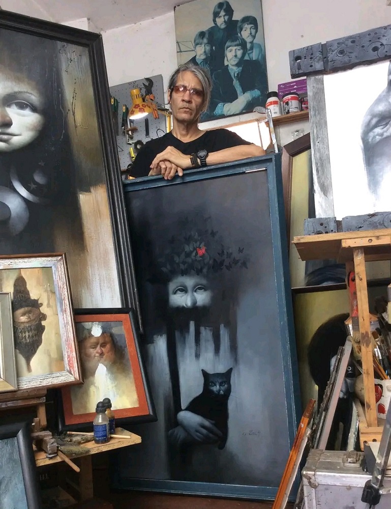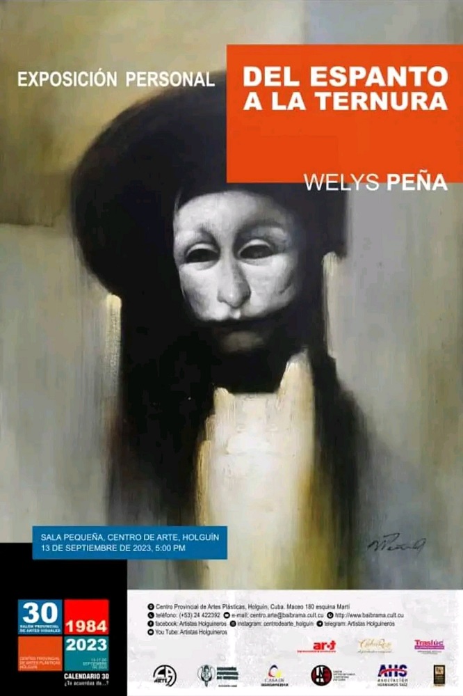 Welis Peña expone nuevamente en Holguín, luego de varios años sin hacerlo. Las piezas que integran Del espanto a la ternura —muestra personal abierta al público en la Sala pequeña del Centro Provincial de Arte, como parte del 30 Salón Provincial de Artes Visuales Calendario 30 ¿Te acuerdas de…?, realizado del 13 al 17 de septiembre— fueron creadas en los últimos años y dejan traslucir muchas de las preocupaciones de un artista que, espantado de todo, se refugia en universos pictóricos por momentos oníricos y en otros fantasiosos y/o fantasmagóricos, donde, como en la canción de Silvio Rodríguez que integra el disco ¡Oh, melancolía! de 1988 y nombra esta exposición, transcurre la vida.