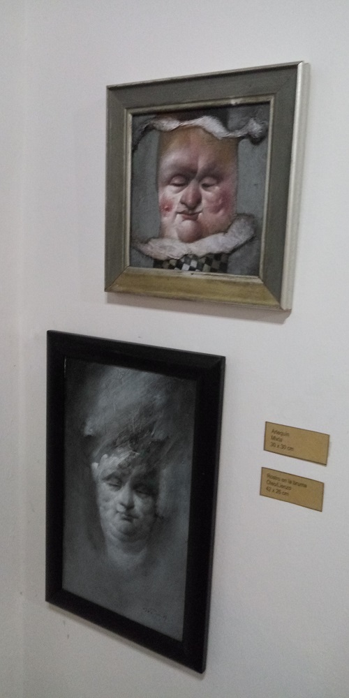 “Son rostros, a veces regordetes como niños viejos, que salen o se sumergen en la bruma: arlequines calcados de un viejo guiñol descolorido, donde se cuentan historias que por fantásticas pueden ser más palpables”.