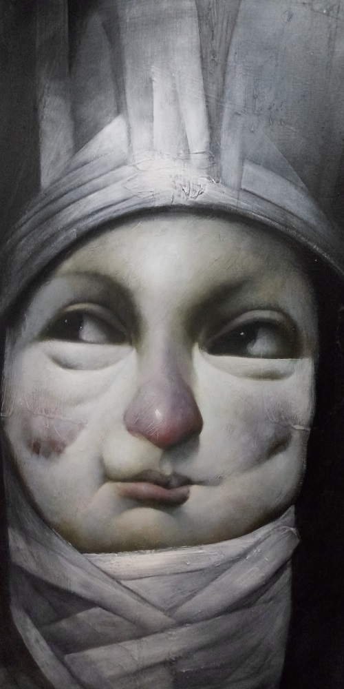 Son máscaras mutiladas, rostros a medias en seres que se anuncian y solo les basta ese resquicio para dejar sentir su presencia apabullante, sobrecogedora. Anclajes del miedo con mirada esquiva. La máscara para salir a la calle y también la que usamos en las redes sociales y el universo virtual y sus debates. Dos máscaras o ¿acaso la misma? El rostro falso que termina convirtiéndose en rostro real y que susurra, sonríe y pregunta.