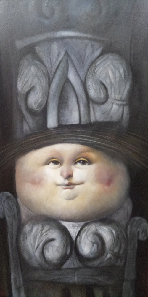 En ellos hay vacilación, incertidumbre. No llegan a cuajar en completas formas humanas y se pierden, verticales, en lo etéreo, ascendiendo como el humo. Son rostros, a veces regordetes como niños viejos, que salen o se sumergen en la bruma: arlequines calcados de un viejo guiñol descolorido, donde se cuentan historias que por fantásticas pueden ser más palpables.